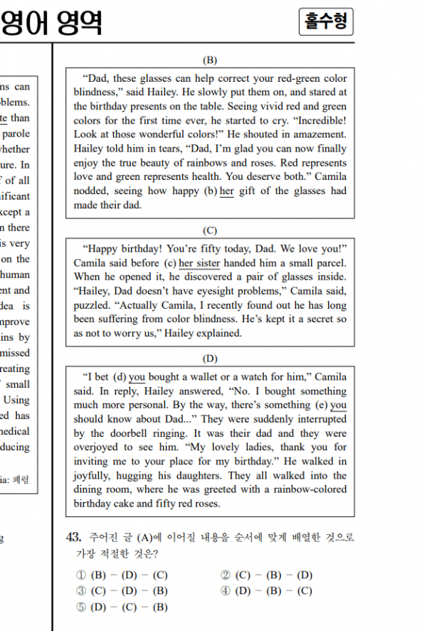 (A 지문이 뭔지는 모르지만 D-C-B 순이 되겠네요. 정답 5번)
