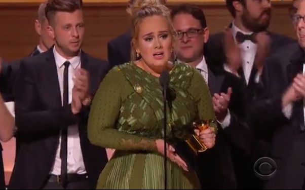 아델은 “개인적으로 비욘세의 '레모네이드' 앨범은 나에게 기념비적이다. 그것은 매우 아름답고 영혼이 가득하며 우리가 보지 못하는 당신의 다른 면을 볼 수 있었다. 많은 예술가들이 당신을 경외하고 당신은 우리의 빛이다”라고 극찬해 비욘세를 눈물 짓게 만들었다. 뿐만 아니라 “올해의 앨범은 비욘세의 '레모네이드'”라는 말과 함께 트로피를 반으로 쪼개는 유쾌한 퍼포먼스를 펼쳐 눈길을 끌기도 했다.