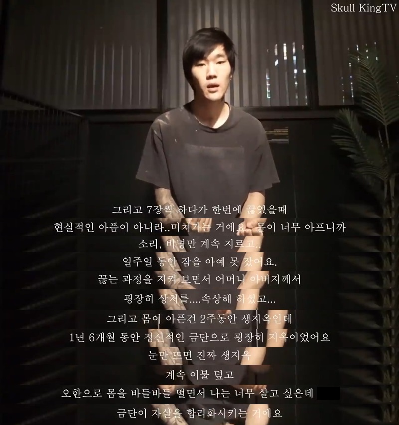 금단 증상과 관련해 혈관엔 드라이 아이스를 주입하고 온몸엔 펄펄 끓는 기름을 끼얹는 고통이라고 말한 부분에서 불리의 고통이 얼마나 크고 끔찍했을지, 또 그것을 이겨내고자 얼마나 몸부림쳤을지 조금은 알 것 같더라고요. 부디 호기심에 마약 건드리려는 사람들이 불리의 이야기를 듣고 조금이라도 경각심을 가졌으면 좋겠습니다.