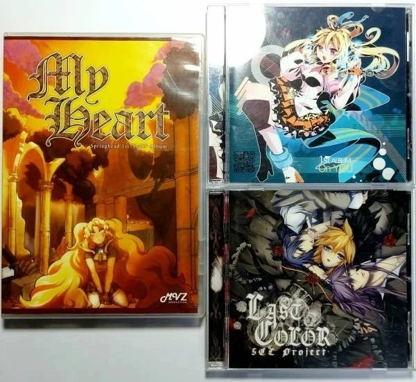 구하기 어려운 정규앨범 단위의 시유 앨범도 2개나 가지고 있습니다. 왼쪽 건 MVZ 프로덕션에서 발매한 프로듀서 Springhead의 정규 1집 앨범 My Heart이구요, 오른쪽 위에건 예전에 존재했던 보컬로이드 창작팀 Team StarRoid에 소속되었던 프로듀서 Mr.Ecstacy의 정규 1집 On You입니다. 이 두 앨범은 음원사이트에서도 들을 수 없어서 더욱 아쉬움이 남네요. 오른쪽 아래의 KAITO, 카가미네 렌, 가쿠포이드 앨범은 시유 앨범 2개를 세트로 사면서 같이 받은 사은품에 가깝습니다.