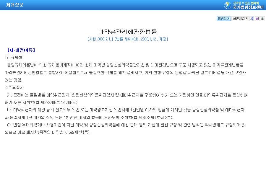 그리고 나중에 대마관리법이 폐지가된게 아니라 2000년 7월 1일에 비슷한 법들이 있어서 통폐합이 된겁니다