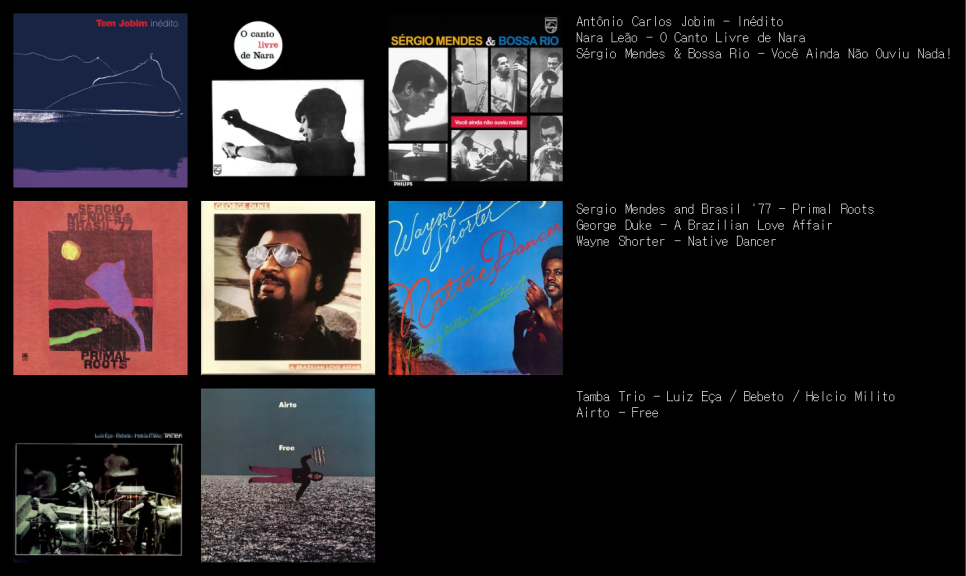 지금부터는 내가 RYM을 통해 들었던 재즈삼바, 보사노바 앨범들. 코멘트는 없다. 왜냐면 느낌이 다 비슷해서 뭐라 쓰지를 못하겠음 ㅇㅇ